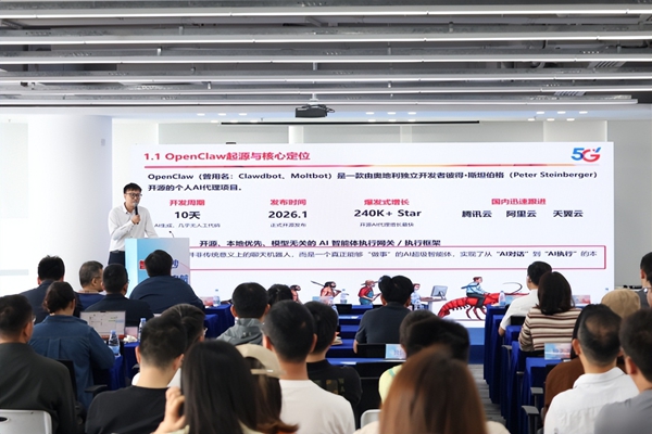 在主題分享環(huán)節(jié),中國電信廣州分公司圍繞《南沙街萬兆光網(wǎng)建設(shè)情況》《天翼云+OpenClaw企業(yè)級(jí)一體化部署方案》兩大主題,講解了萬兆光網(wǎng)的技術(shù)優(yōu)勢(shì)、覆蓋范圍、應(yīng)用場(chǎng)景及未來擴(kuò)容規(guī)劃,彰顯高速穩(wěn)定網(wǎng)絡(luò)底座對(duì)數(shù)字產(chǎn)業(yè)發(fā)展的堅(jiān)實(shí)支撐,引發(fā)現(xiàn)場(chǎng)熱烈反響。