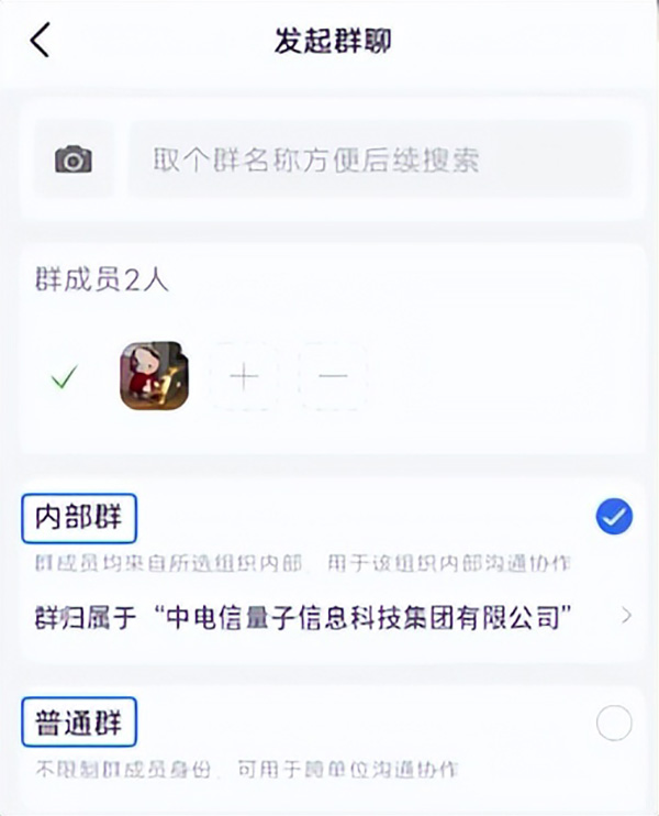 和普通社交軟件不同,量子密信的群聊在創(chuàng)建時(shí)即可選擇“內(nèi)部群”或“普通群”,“內(nèi)部群”僅支持邀請(qǐng)本組織內(nèi)成員,避免通訊錄同名同姓拉錯(cuò)群的尷尬,降低了外部人員被拉進(jìn)重要討論群的風(fēng)險(xiǎn),特別適合部門協(xié)作、項(xiàng)目組溝通。