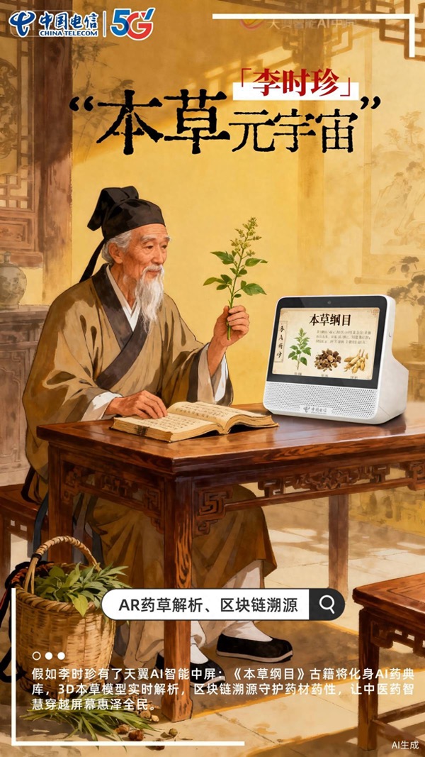 假如歷史先賢執(zhí)掌天翼AI智能中屏,將激起怎樣的智慧風(fēng)暴?快來(lái)一起看歷史先賢與天翼AI共同開(kāi)啟一場(chǎng)跨越千年的對(duì)話,李時(shí)珍解析3D本草,蘇軾復(fù)刻數(shù)字佳肴,李白詩(shī)酒年華……古老智慧與未來(lái)科技在此刻交響。