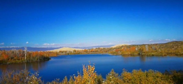 白沙湖的神奇之處在于:它沒有進水口也沒有出水口,卻常年水位不變,不增不減,不凝不濁。湖中生長著高達1~4米的蘆葦、菖蒲等水生植物,甚至還有孤寂的野荷花。湖岸則是高大茂密的銀灰楊、白楊、白樺混生林帶,50米外的沙丘上,額河楊、山楂、繡線菊等植物構(gòu)成一道天然屏障。