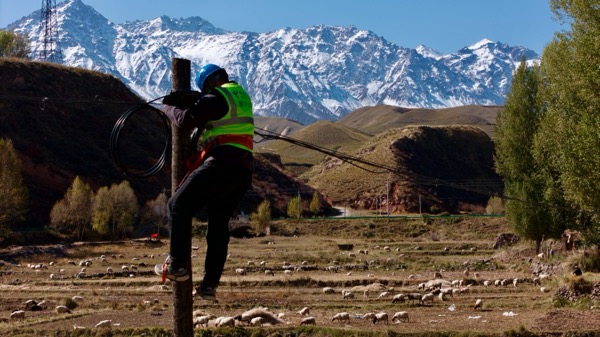 深秋時節(jié),祁連山麓的民樂縣永固鎮(zhèn)姚寨村已披上金裝。在這片黃綠交織的草原與巍峨雪山的映襯下,一群身著熒光色工裝的“通信衛(wèi)士”成為中國電信張掖分公司國防光纜秋巡作業(yè)中最動人的風(fēng)景。 作業(yè)團隊在秋色浸染的高原上展開光纜標(biāo)樁定位與桿路檢修。工作人員或合力扶正“國防光纜”標(biāo)識樁,或攀上電桿精心調(diào)測線纜。遠處吃草的羊群、山坡上黃葉斑駁的樹木,與工人身影共同構(gòu)成一幅自然與科技和諧共融的秋日畫卷。 在海拔3000多米的高原環(huán)境下,團隊成員持續(xù)開展光纜標(biāo)石加固、線路隱患排查等系列運維工作。秋高氣爽的藍天之下,連綿的雪山靜靜見證著這群通信守護者用專業(yè)與汗水,筑牢高原深處的信息長城。