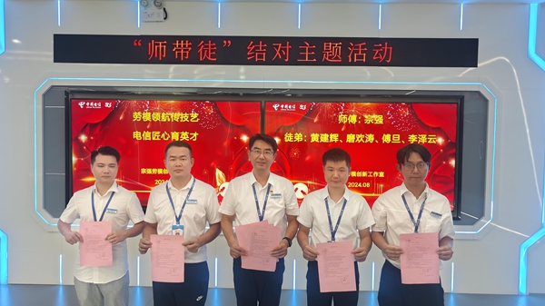 人才培育強梯隊,匠心傳承促發(fā)展。工作室秉持“靶向訓(xùn)、師徒練、跨界練”三位一體培養(yǎng)模式,為企業(yè)創(chuàng)新發(fā)展筑牢人才根基。靶向訓(xùn)聚焦行業(yè)前沿,年均開展“云端講堂”超1000人次,定制工業(yè)互聯(lián)網(wǎng)、智能組網(wǎng)等特色課程;“勞模帶徒角”持續(xù)發(fā)揮傳幫帶作用,累計培養(yǎng)技術(shù)骨干50余人;師徒練以項目為載體,將32項典型故障案例轉(zhuǎn)化為實戰(zhàn)教材,成功培養(yǎng)13名市級電信系統(tǒng)“交付運維能手”;跨界組建混編攻堅組,助力100余家企業(yè)完成數(shù)字化轉(zhuǎn)型。十年耕耘間,工作室已涌現(xiàn)全國勞模1人、省部級勞模6人、省級技術(shù)能手12人,8人晉升管理崗位,形成“勞模引領(lǐng)、骨干集聚、青年成長”的良性人才成長格局,團隊此前已榮獲“全國工人先鋒號”稱號。