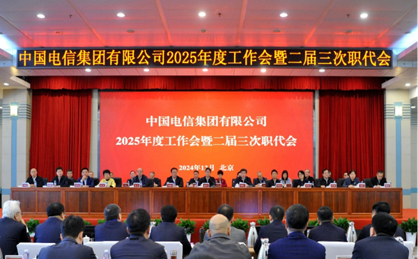 12月25日至26日中午,中國(guó)電信2025年度工作會(huì)在京召開(kāi)。會(huì)議以習(xí)近平新時(shí)代中國(guó)特色社會(huì)主義思想為指導(dǎo),全面貫徹落實(shí)黨的二十大和二十屆二中、三中全會(huì)精神以及中央經(jīng)濟(jì)工作會(huì)議精神,認(rèn)真落實(shí)中央企業(yè)負(fù)責(zé)人會(huì)議部署,總結(jié)2024年工作,分析當(dāng)前形勢(shì),研究部署2025年任務(wù),動(dòng)員全集團(tuán)廣大干部員工堅(jiān)定信心、搶抓機(jī)遇,進(jìn)一步全面深化改革,加快推進(jìn)企業(yè)高質(zhì)量發(fā)展。工業(yè)和信息化部黨組成員、副部長(zhǎng)張?jiān)泼鞒鱿瘯?huì)議并講話,中國(guó)電信董事長(zhǎng)、黨組書記柯瑞文講話,總經(jīng)理、黨組副書記梁寶俊作工作報(bào)告,黨組副書記劉桂清作會(huì)議總結(jié)。